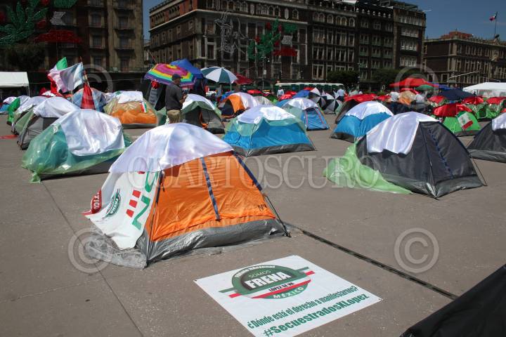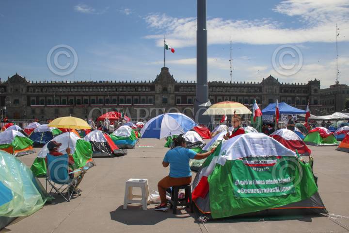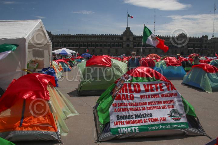 Integrantes del Frente Nacional Anti-AMLO (FRENA) mantienen su plantón en la plancha del zócalo, en donde exigen la renuncia del Jefa del Ejecutivo, Andrés Manuel López Obrador.