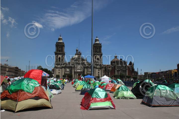 Son pocas personas las que se observan en el campamento que mantienen integrantes del Frente Nacional Anti-AMLO en el Zócalo, por lo que los fuertes vientos levantan las tiendas de campaña. Ayer su líder Gilberto Lozano anunció que levantarían su campamento con miras a una marcha que pretenden realizar el 21 de noviembre y que culminará en el primer cuadro.