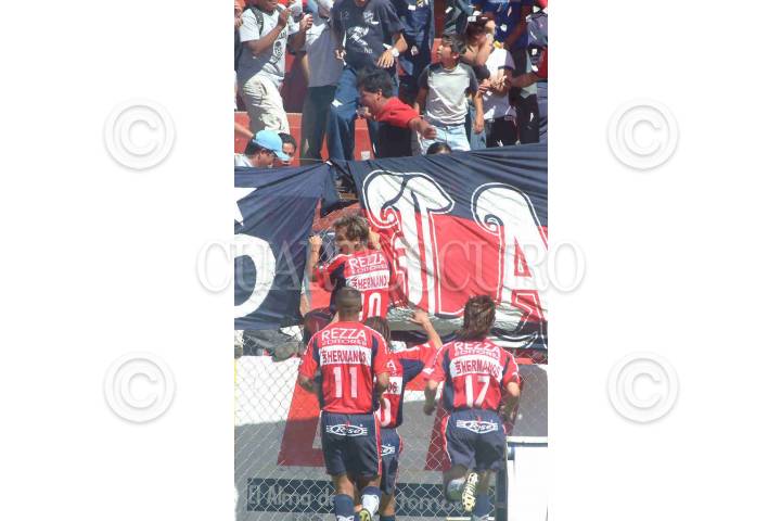 Irapuato, 22FEBRERO2004.- Diego Garay, jugador del Irapuato, festeja su gol con su afición. La anotación fue el primero de los dos goles, que los freseros le anotaron a las Aguilas del América. En el encuentro que disputaron en el estadio Sergio León Chávez. FOTO: Iván Stephens/CUARTOSCURO.COM