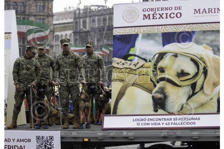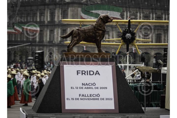 La Secretaría de Marina rindió un homenaje al elemento canino "Frida", al develar su escultura por su destacada trayectoria en las labores de rescate del sismo del 19 de septiembre de 2017.