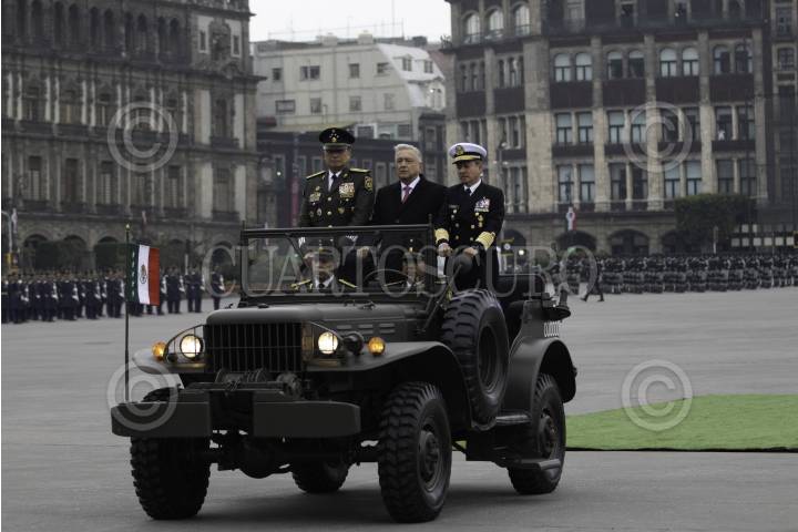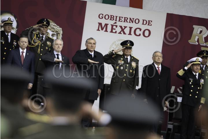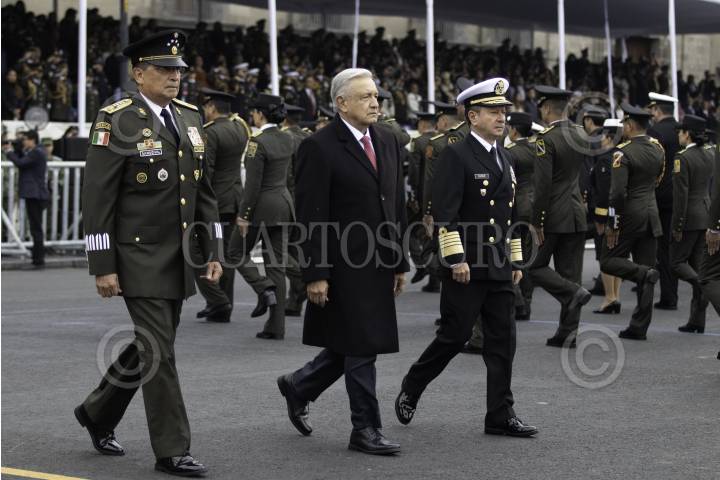 Andrés Manuel López obrador, presidente de México acompañado de gabinete encabezó el Desfile militar del 20 de noviembre. Ceremonia 112 aniversario de la Revolución Mexicana que se lleva a cabo en el Zócalo Capitalino.
