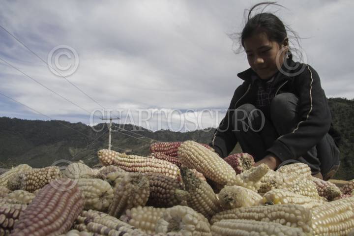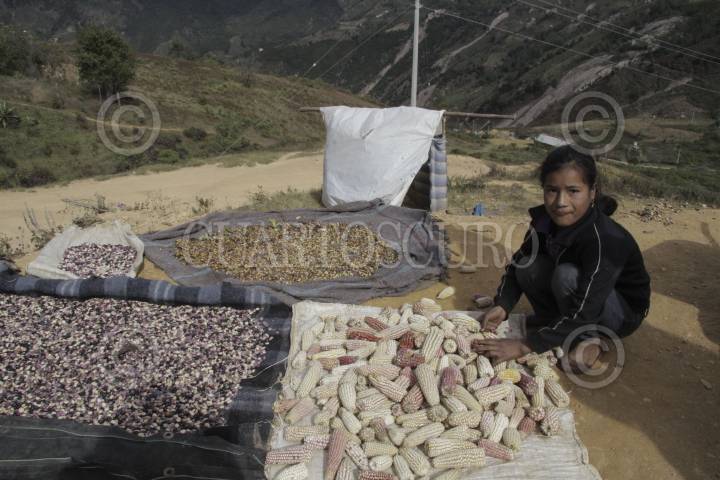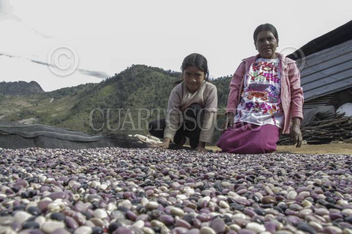 COCHOAPA EL GRANDE, GUERRERO, 08ENERO2015.- Una mujer de nombre Macrina y sus hijos lucha por la supervivencia en una comunidad del municipio de Cochoapa el Grande. Realizan desde muy temprano sus tareas y trabajos de cosecha de frijol y maíz, lo cual es la principal fuente de alimentación en estos pueblos mixtecos. De la buena cosecha dependen los alimentos de muchas familias indígenas en la sierra y la montaña baja. FOTO: BERNANDINO HERNÁNDEZ /CUARTOSCURO.COM