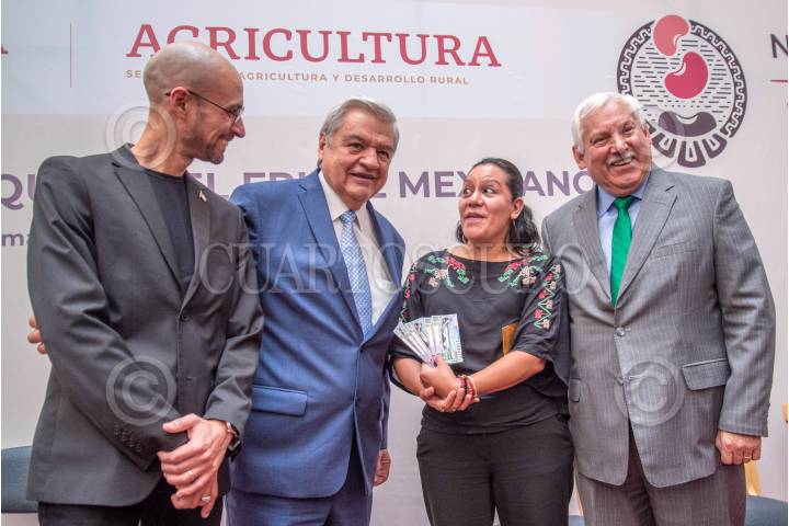 Víctor Villalobos y María Luisa Albores presentarón el billete conmemorativo de la Lotería Nacional del frijol mexicano
