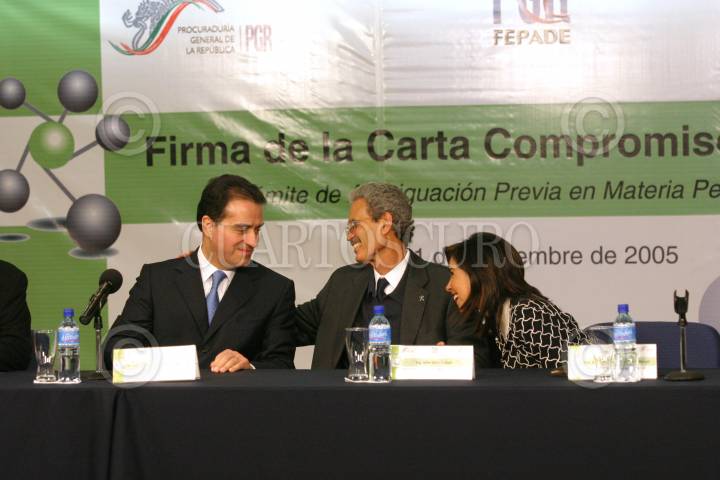 MEXICO, D.F. 21NOVIEMBRE2005.- Daniel Cabeza de Vaca, titular de la PGR, Ishie Gitlin Dultzin, integrante del Consejo ciudadano y María de los Angeles Fromow, titularde la FEPADE durante la ceremonia de la Firma de la Carta Compromiso al Ciudadano. FOTO: Nelly Salas/CUARTOSCURO.COM