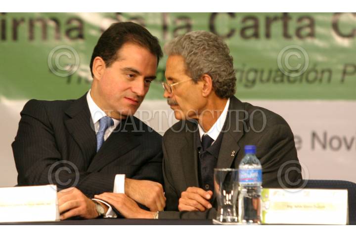 MEXICO, D.F. 21NOVIEMBRE2005.- Daniel Cabeza de Vaca, titular de la PGR conversa con Ishie Gitlin Dultzin, integrante del Consejo ciudadanodurante la ceremonia de la Firma de la Carta Compromiso al Ciudadano. FOTO: Nelly Salas/CUARTOSCURO.COM