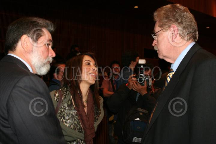 MEXICO, D.F., 05JUNIO2006.- Luis Carlos Ugalde, Consejero presidente del IFE, Leonel Castillo, magistrado del TRIFE y María de los Angeles Fromow, Fiscal Especial Para la Atención de Delitos Electorales, participaron en el coloquio Las Instituciones Electorales ante la Sociedad Mexicana, Análisis y Reflexión, en el Museo Franz Mayer. FOTO: Moisés Pablo/CUARTOSCURO.COM