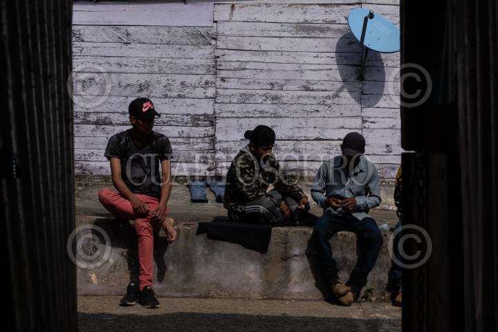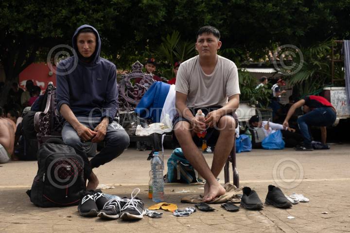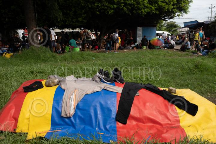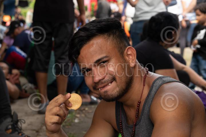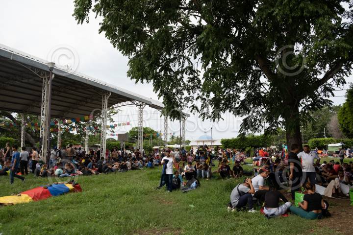La Caravana Migrante, en la cual van en su mayoría venezolanos, descansaron en el Parque Central del municipio de Álvaro Obregón, Chiapas.