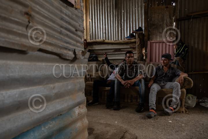 Un grupo de migrantes hondureños toma un descanso después de caminar sobre las vías del tren desde Salto de Agua.