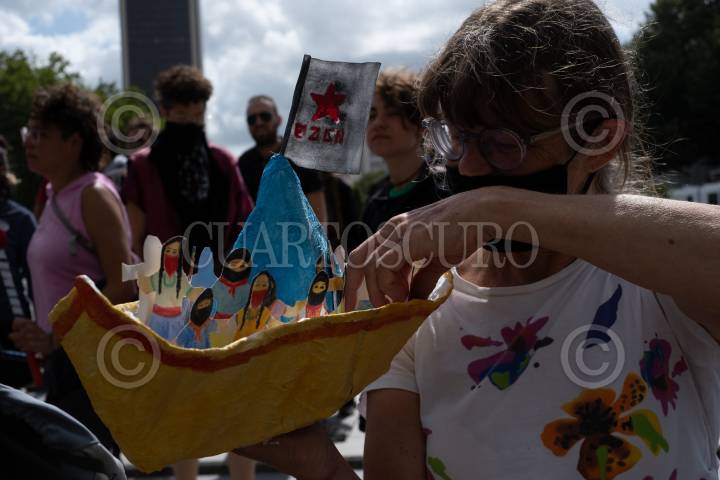 Colectivos y organizaciones europeas se manifestaron para exigir el paso libre a la delegación aérea zapatista en Francia.
