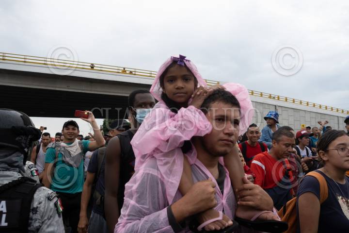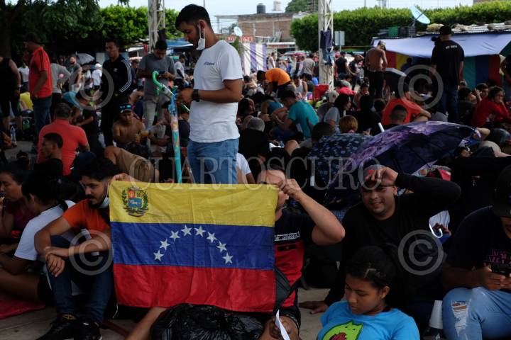 Alrededor de cuatro mil migrantes provenientes de Venezuela, Nicaragua, Honduras, Guatemala, África, Haití salieron en caravana desde el Parque Bicentenario para abandonar el municipio chiapaneco, donde han permanecido por meses intentando resolver su situación migratoria.