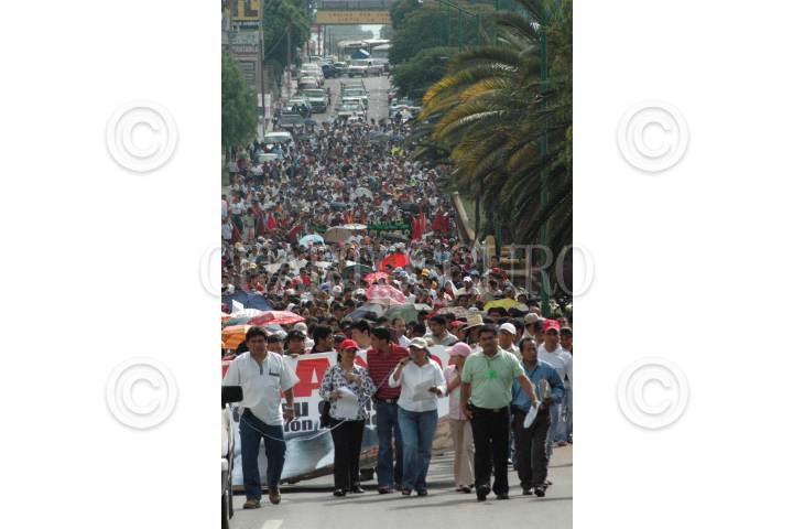 OAXACA,OAXACA.-27OCTUBRE2005.- Alrededor de 10 mil maestros pertenecientes a las regiones del estado, salieron a las calles para exigir el cese inmediato del director del IEEPO (Instituto Estatal De Educación Publica de Oaxaca), Froylan Cruz Toledo por corrupto. Mantuvieron un paro de 24 horas dejando sin clases a alrededor de un millón 3oo mil alumnos. FOTO: Blanca Esthela Hernàndez/CUARTOSCURO.COM