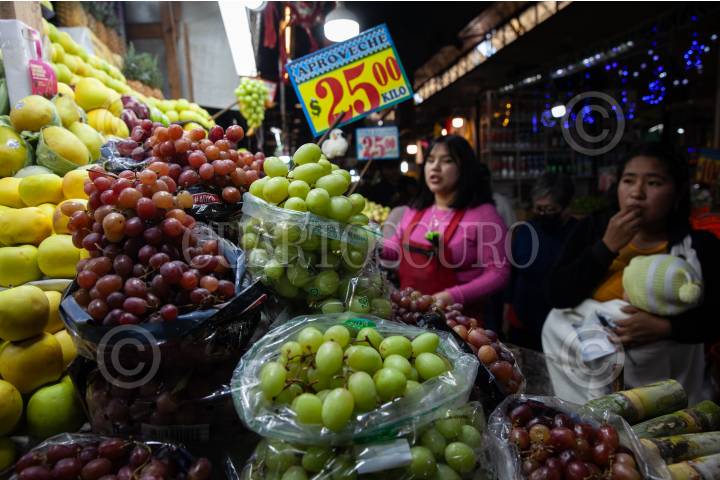 CIUDAD DE MÉXICO, 30DICIEMBRE2024.- A un día de la celebración de año nuevo el mercado de la merced ofrece varios puestos con uvas con un precio de hasta $90 pesos por kilo. Según datos del Instituto Nacional de Estadística y Geografía (INEGI), el precio promedio del kilo de uvas en México es de 105.1 pesos, reflejando un aumento anual del 9.7% en términos reales. FOTO: ANDREA MURCIA / CUARTOSCURO.COM