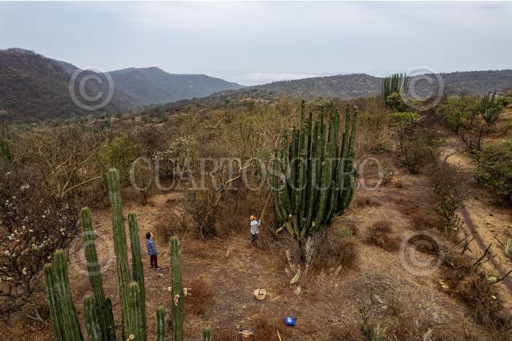 Cada año desde los primeros días del mes de mayo y hasta finales de junio, pobladores del municipio de Jalpa, al sur del estado de Zacatecas, realizan la recolección de la pitaya. Fruto de una cactácea, de nombre científico Stenocereus queretaroensis y popularmente llamada pitayo o yagüarey, muy común en zonas semiáridas del centro y norte de México. Este fruto, atractivo por la variedad de colores, así como su fresca y peculiar pulpa, tiene sus raíces en las antiguas culturas, el nombre de pitaya se le dio en las Antillas, significa “fruto escamoso”, pero los antiguos pobladores la llamaban “coapetilla”, que quiere decir serpiente gruesa, refiriéndose a la apariencia de las ramas del pitayo. Desde la época prehispánica está planta, ha sido un complemento importante en la dieta de las comunidades originarias, considerada una de las fuentes más importantes de alimento; los investigadores mencionan que algunos le daban a la pitaya un uso ritual, pues además de alimento, lo consideraban regalo en celebraciones para hacer alianzas en la guerra y también se hacía una bebida a base de la fruta y el mezcal. Las primeras plantaciones comerciales de la pitaya comenzaron a finales del siglo XIV y una de las regiones importantes fue el estado de Jalisco y su frontera con Zacatecas.