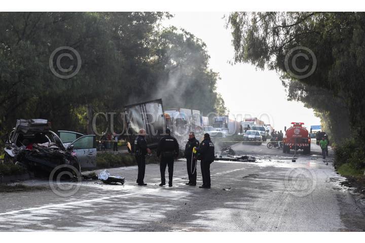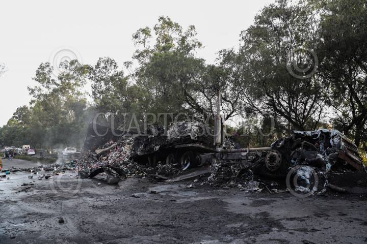ACOLMAN, ESTADO DE MÉXICO, 12SEPTIEMBRE2018.- Un tráiler colisionó con dos vehículos en la carretera Lechería - Texcoco kilómétro 6, bajo el puente de Tepexpan, dejando un saldo de dos muertos. FOTO: ARMANDO MONROY /CUARTOSCURO.COM