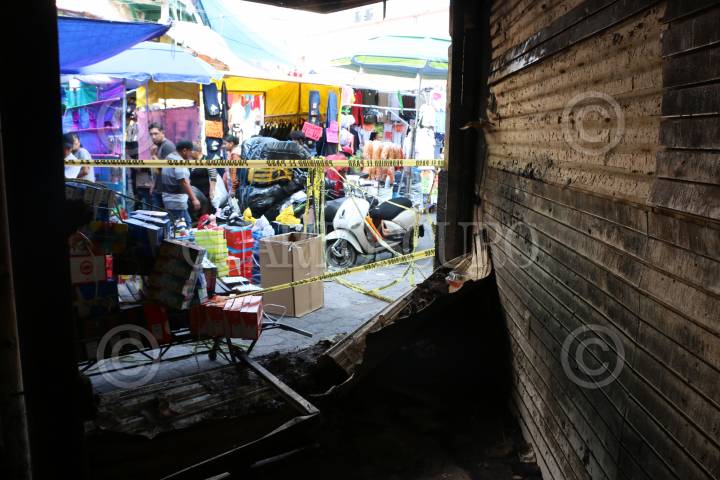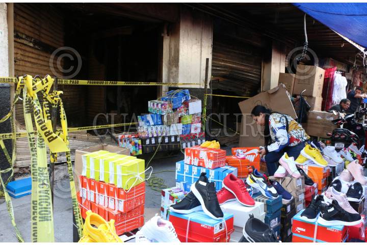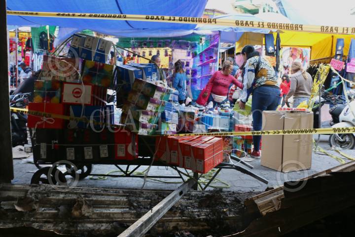 Después del incendio registrado en el Mercado Mercado Abelardo Rodríguez, vendedores colocan susu producto afuera de lod locales afectados.