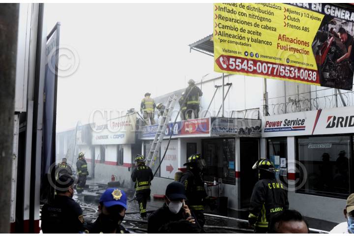 Llamas consumen casi en su totalidad local de llantas, en la alcaldía de Miguel Hidalgo. La oportuna intervención de Bomberos permitió que la conflagración fuera controlada rápidamente.