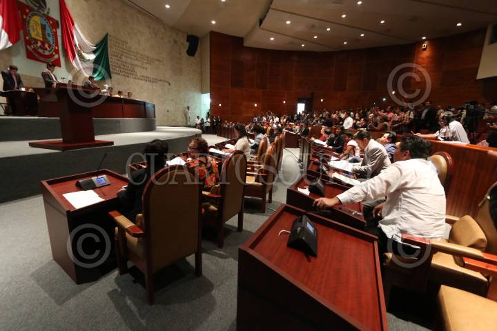 SAN RAYMUNDO JALPAN, OAXACA, 09AGOSTO2017.- Con 37 votos a favor, cero abstenciones y cero en contra, los diputados de la 63 legislatura local aprobaron el dictamen de proyecto de decreto por el que se deroga la fracción cuadragésima sexta del articulo 59 así como los artículos 118 y 119 y se reforma el articulo 123 de la constitución política local, desapareciendo de esta forma la figura del fuero, mismo que beneficiaba a los legisladores, magistrados, consejeros electorales y al gobernador, entre otros. FOTO: ARTURO PÉREZ ALFONSO/ CUARTOSCURO.COM