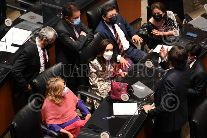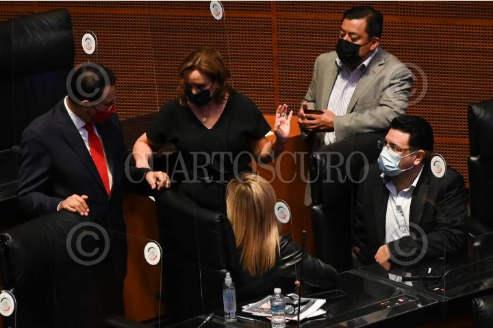 Claudia Ruiz Massieu dialoga con legisladores durante la sesión de la Comisión Permanente.