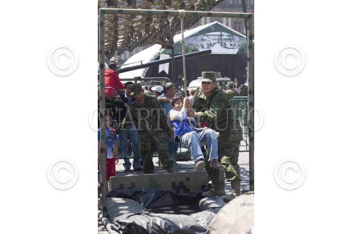 MÉXICO, D.F., 06MARZO2013.- Soldados apoyan a los niños que visitan la exposición “Fuerzas Armadas…Pasión por servir a México” la cual hoy cumple su último día en el Zócalo capitalino. Esta muestra fue inaugurada por el Presidente de México en el mes de febrero y ha sido visita por miles de capitalinos y turistas nacional o extranjeros quienes han podido conocer un poco más sobre el ejercito y las tareas que realizan en favor del país, FOTO: MOISÉS PABLO /CUARTOSCURO.COMMÉXICO, D.F., 06MARZO2013.- Soldados apoyan a los niños que visitan la exposición “Fuerzas Armadas…Pasión por servir a México” la cual hoy cumple su último día en el Zócalo capitalino. Esta muestra fue inaugurada por el Presidente de México en el mes de febrero y ha sido visita por miles de capitalinos y turistas nacional o extranjeros quienes han podido conocer un poco más sobre el ejercito y las tareas que realizan en favor del país, FOTO: MOISÉS PABLO /CUARTOSCURO.COM