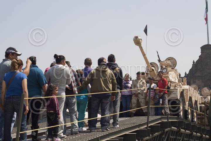 MÉXICO, D.F., 25FEBRERO2013.- Cientos de personas acuden al zócalo capitalino para conocer, tocar, subirse y tomarse fotografías, en los diferentes vehículos y tanques que la Secretaria de Marina y la Secretaria de la Defensa Nacional mantienen en el marco de la exposición "Fuerzas armadas... pasión por servir a México", como parte de los festejos de los 100 años del Ejército Mexicano. FOTO: DIEGO SIMÓN SÁNCHEZ /CUARTOSCURO.COM