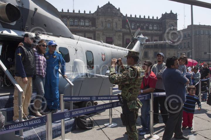 MÉXICO, D.F., 15FEBRERO2013.- Se inauguró la exposición militar "Fuerzas Armadas...Pasión por servir a México" en la plancha del Zócalo. En la cual se exhiben helicópteros de la Marina y Fuerza Aérea, tanques, tanquetas, armas de uso exclusivo del ejercito, maniobras y tácticas de la fuerza especiales, y un avión de la fuerza aérea. FOTO: MOISÉS PABLO /CUARTOSCURO.COM