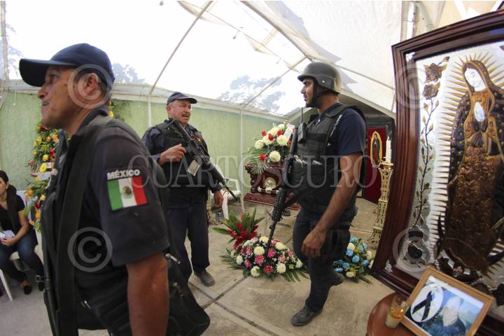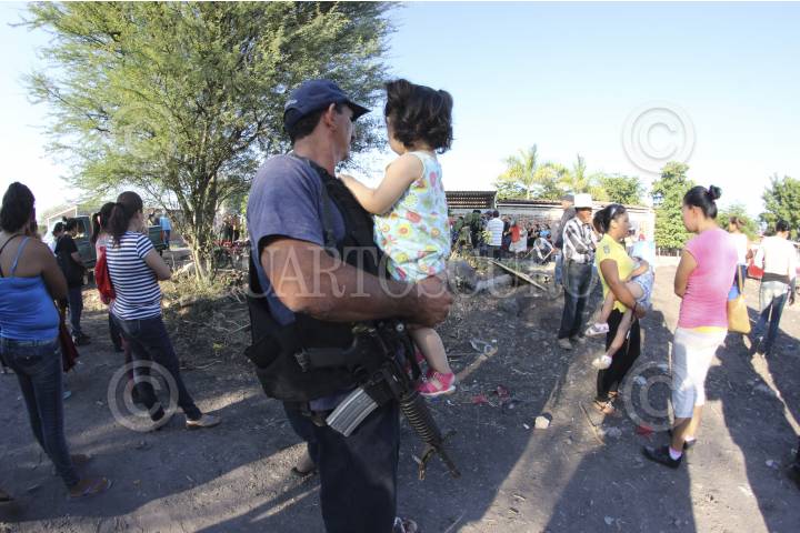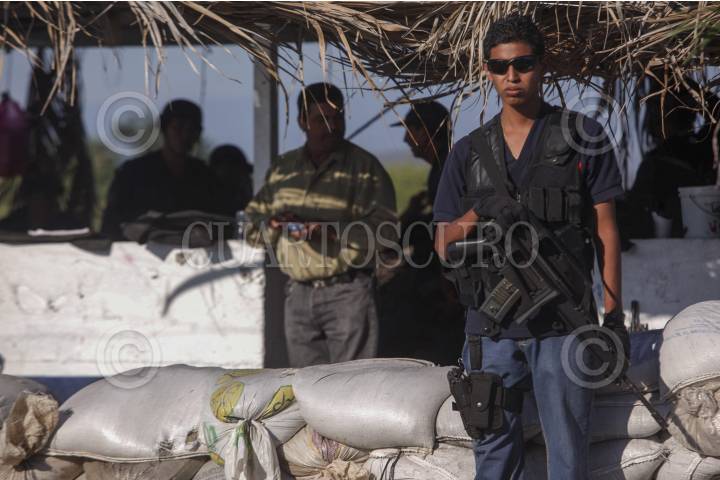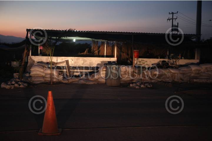 BUENAVISTA TOMATLAN, MICHOACÁN, 19DICIEMBRE2014.- El día de hoy fue sepultado Hernán Valencia, abatido el pasado martes 16 en el enfrentamiento entre grupos rivales de la Fuerza Rural de la comunidad de La Ruana. El grupo del líder y fundador de las Autodefensas, Hipólito Mora, se mantiene dentro del hogar de su comandante, expectante de los resultados de las investigaciones, la barricada se encuentra prácticamente abandonada. FOTO: ALAN ORTEGA /CUARTOSCURO.COM