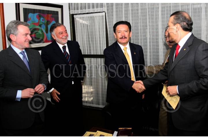 MÉXICO D.F. 08FEBRERO2008.-Los senadores Santiago Creel (PAN) Carlos Navarrete (PRD) y Manlio Fabio Beltrones (PRI) momentos antes de su participación en el seminario internacional "Cómo Hacer Que Funcione El Sistema Presidencial" esto en el instituto de investigaciones Juridicas de la UNAM. FOTO: GUILLERMO PEREA/CUARTOSCURO.COM
