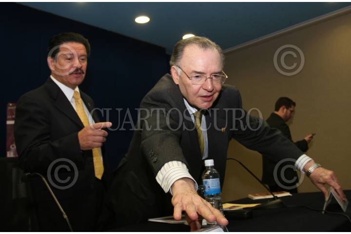MÉXICO D.F. 08FEBRERO2008.-El investigador Diego Valadés, los senadores Santiago Creel (PAN) Carlos Navarrete (PRD) y Manlio Fabio Beltrones (PRI) durante su participación en el seminario internacional "Cómo Hacer Que Funcione El Sistema Presidencial" esto en el instituto de investigaciones Juridicas de la UNAM. FOTO: GUILLERMO PEREA/CUARTOSCURO.COM