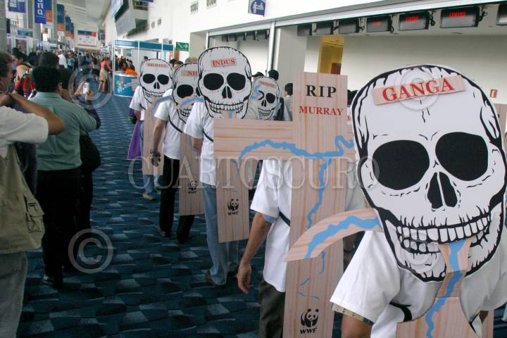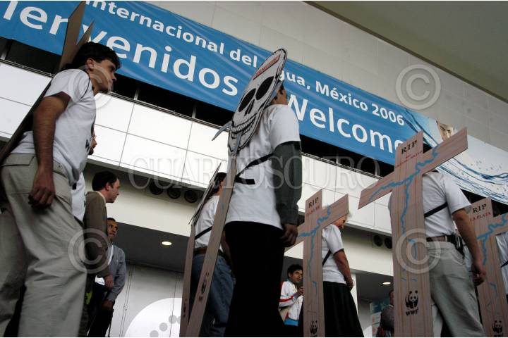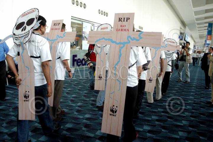 MEXICO, D.F., 17MARZO2006.- Integrantes del Fondo Mundial para la Naturaleza o en sus siglas en inglés World Wildlife Fund, organizaron una protesta pacífica por la muerte de varios ríos del mundo, en el marco del IV Foro Mundial del Agua México 2006, en el Centro Banamex. FOTO: Germán Romero/CUARTOSCURO.COM