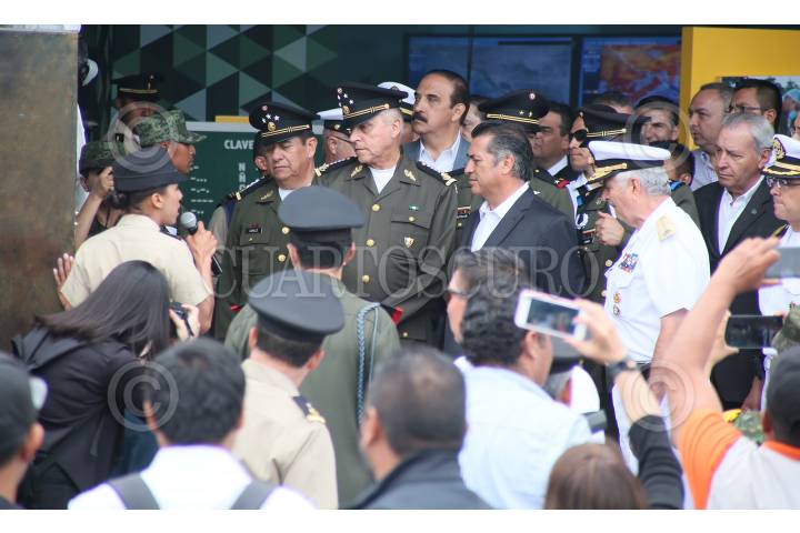 MONTERREY, NUEVO LEÓN, 07ABRIL2017.- Inicia en el Parque Acero, dentro del Parque Fundidora, la Exposición “Fuerzas Armadas… Pasión por servir a México”, que concluirá el próximo 7 de mayo. El Gobernador Jaime Rodríguez Calderón, acompañado de Salvador Cienfuegos Zepeda, Secretario de la Defensa Nacional, y Ángel Enrique Sarmiento Beltrán, Subsecretario de Marina Armada de México, encabezó la ceremonia de inauguración. FOTO: PRENSA NL /CUARTOSCURO.COM