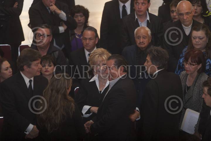 MÉXICO, D.F., 21FEBRERO2013.- La conductora deradio, Maxin Wodside y el productor de televisión, Salvador Mejía, dialógan durante el homenaje que se le rindió en el Palacio de Bellas Artes del actor Joaquín Cordero quien falleció el pasado martes a los 90 añós de edad. FOTO: FRANCISCO RODRÍGUEZ /CUARTOSCURO.COM