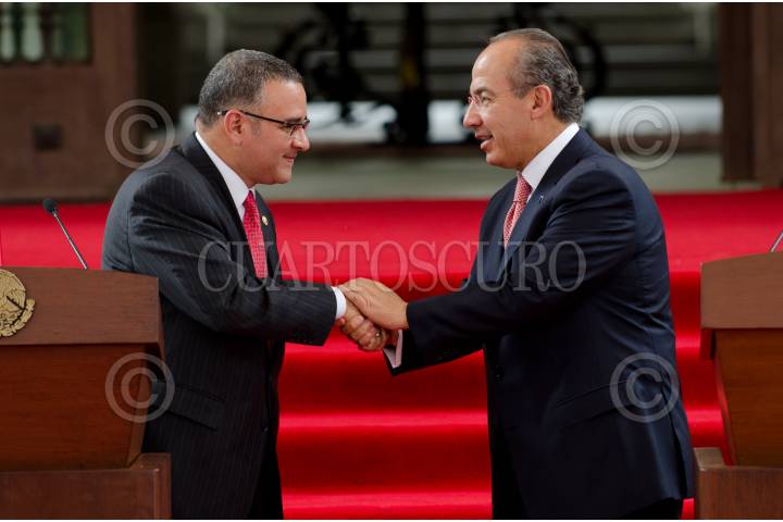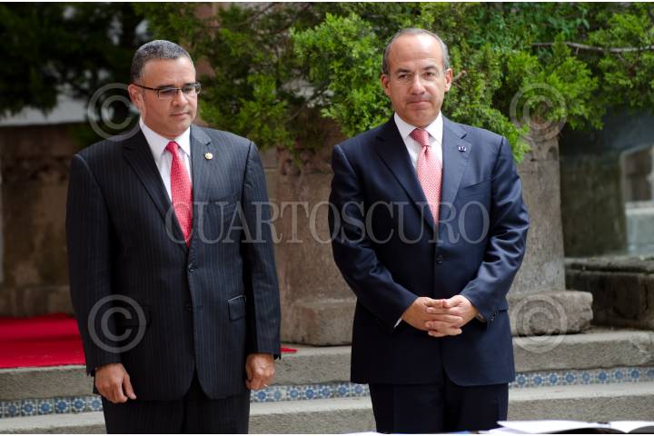 MÉXICO, D.F., 20JUNIO2011.- Felipe Calderón Hinojosa, presidente de México ofreció una recepción en honor a Mauricio Funes (izquierda), presidente de El Salvador, durante una visita de estado que realiza el mandatario de este país. Ésto se realizó en la residencia oficial de Los Pinos. FOTO: MISAEL VALTIERRA/CUARTOSCURO.COM
