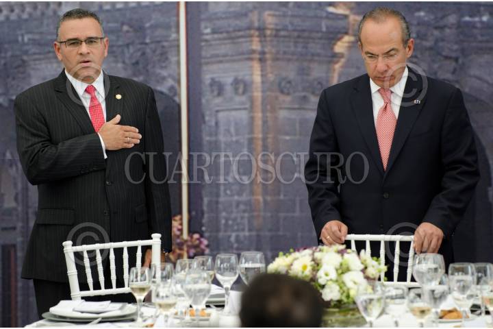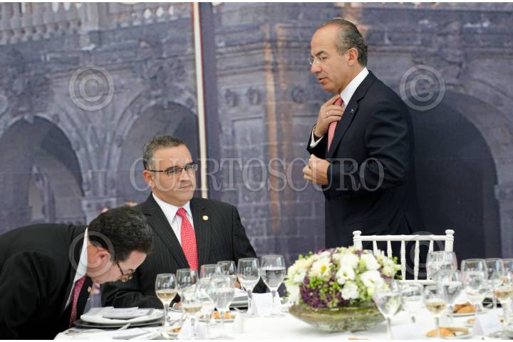 MÉXICO, D.F., 20JUNIO2011.- Mauricio Funes, presidente de El Salvador y Felipe Calderón Hinojosa, presidente de México; durante un almuerzo de estado en honor al mandatario salvadoreño quien realiza una visita de estado a México. Ésto se realizó en el Alcazar del Castillo de Chapultepec. FOTO: MISAEL VALTIERRA/CUARTOSCURO.COM