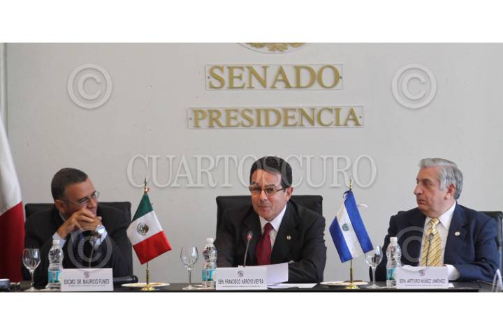 MÉXICO, D.F. 21JUNIO2011.- Mauricio Funes Cartagena, presidente de El Salvador acompañado del senador Agustín Arroyo y el senador Arturo Nuñez durante una reunión con legisladores que se realizo en el Senado de la República. FOTO: RODOLFO ANGULO/CUARTOSCURO.COM