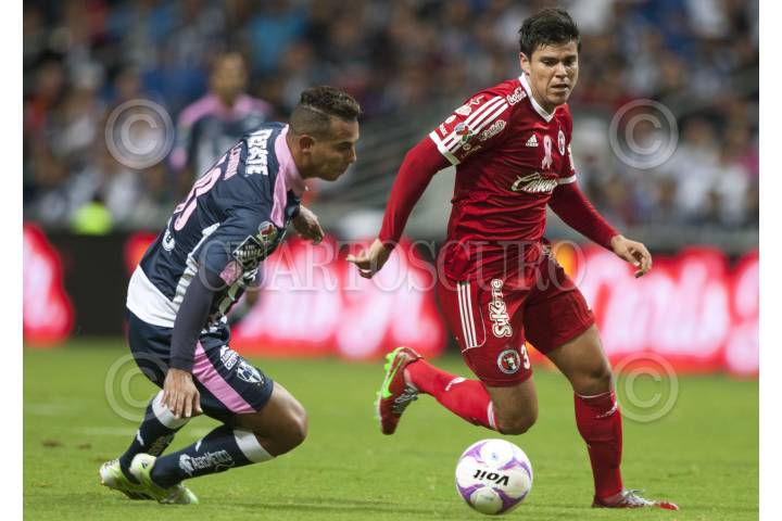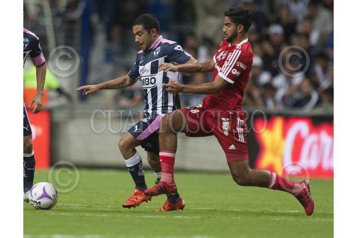 MONTERREY, NUEVO LEÓN, 24OCTUBRE2015.- Edwin Cardona del equipo de los Rayados del Monterrey se disputa el balón con Pedro Hernández del equipo de los Xolos de Tijuana, en el estadio BBVA Bancomer, partido correspondiente a la jornada 14 de la Liga MX, Apertura 2015. Marcador Final: Monterrey 3 - Tijuana 1. FOTO: GABRIELA PÉREZ MONTIEL / CUARTOSCURO.COM
