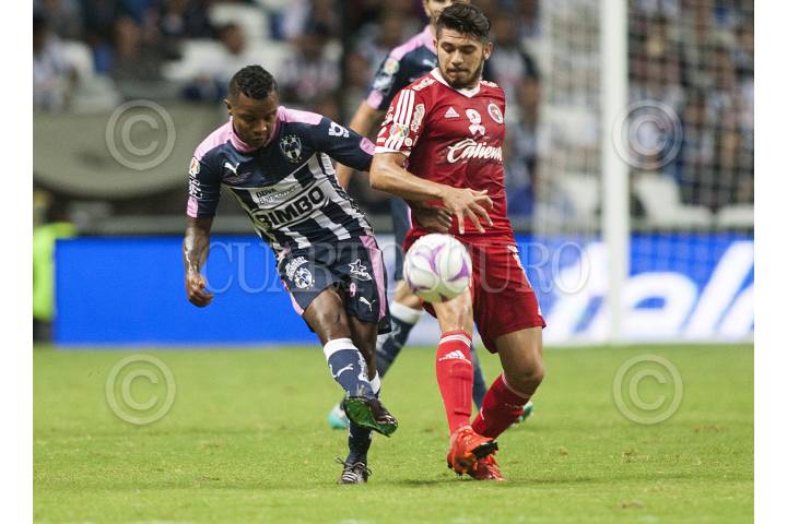 MONTERREY, NUEVO LEÓN, 24OCTUBRE2015.- Dorlan Pabón del equipo de los Rayados del Monterrey se disputa el balón con Juan Nuñez del equipo de los Xolos de Tijuana, en el estadio BBVA Bancomer, partido correspondiente a la jornada 14 de la Liga MX, Apertura 2015. Marcador Final: Monterrey 3 - Tijuana 1. FOTO: GABRIELA PÉREZ MONTIEL / CUARTOSCURO.COM
