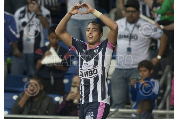 MONTERREY, NUEVO LEÓN, 07NOVIEMBRE2015.- Rogelio Funes Mori del equipo de los Rayados del Monterrey celebra el gol ante el equipo de las Águilas del América, en el estadio BBVA Bancomer, partido correspondiente a la jornada 16 de la Liga MX, Apertura 2015. Marcador Final: Monterrey 2 - América 1. FOTO: GABRIELA PÉREZ MONTIEL / CUARTOSCURO.COM