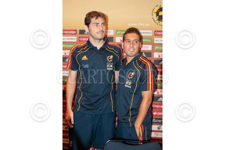 MÉXICO, D.F., 10AGOSTO2010.- Iker Casillas y Santi Cazorla, jugadores de la selección de España, ofreció conferencia de prensa para hablar del partido que disputaran las selecciones de México y España en el estadio Azteca . FOTO: IVAN MENDEZ/CUARTOSCURO.COM