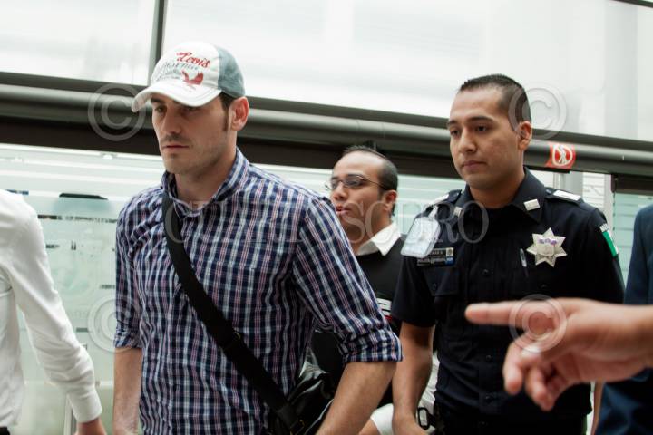 MÉXICO, D.F., 08JUNIO2011.- Iker Casilla, portero de la selección Española de fútbol, a su llegada al aeropuerto internacional de la ciudad de México para después empezar a realizar una serie de actividades en el país. FOTO: ENRIQUE ORDÓÑEZ/CUARTOSCURIO.COM