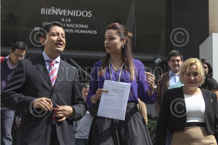 MÉXICO D.F., 03JULIO2013.- Olivia Garza, Laura Ballesteros y Orlando Anaya, diputados locales, presentaron una queja ante la Comisión Nacional de Derechos Humanos para que se investiguen todos lo casos de omisión en pensiones alimenticias por parte de cualquier funcionarios o exfuncionarios públicos, como presuntamente lo ha hecho el exministro Genaro Góngora Pimentel. FOTO: SAÚL LÓPEZ /CUARTOSCURO.COM