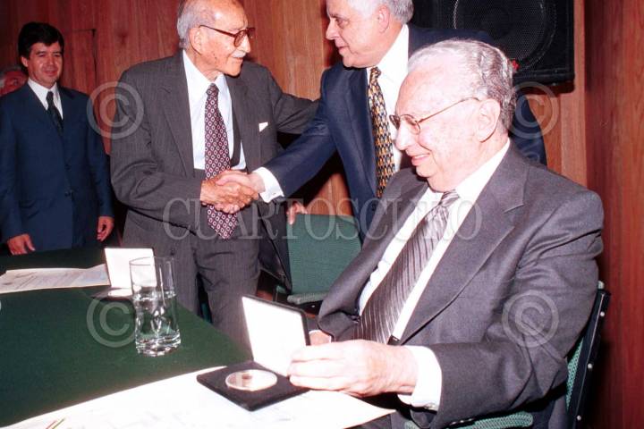 Genaro Gongora Pimentel, presidente de la Suprema Corte de Justicia de la Nación hizo entrega de la Distinción al Merito Judicial 2000 Ignacio L. Vallarta a los ministros Gustavo Rodríguez Berganzo y Rafael Perez. FOTO: Oswaldo Ramírez/CUARTOSCURO.COM.