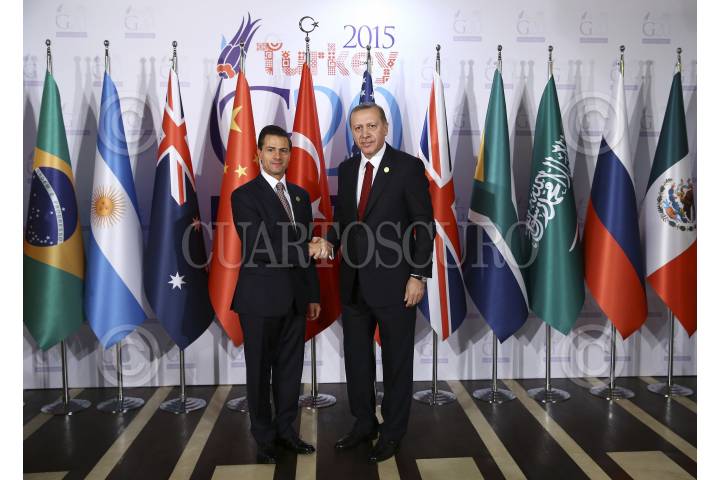 ANTALYA, TURQUIA,14NOVIEMBRE2015.- Enrique Peña Nieto, presidente de México asistió hoy a la cena que el Presidente de la República de Turquía, Recep Tayyip Erdogan, y su esposa, Emine Erdogan, ofrecieron en honor de los mandatarios que se encuentran ya en esta ciudad para participar en la Cumbre de Líderes del G20, que se llevará a cabo los días 15 y 16 de noviembre. FOTO: PRESIDENCIA /CUARTOSCURO.COM
