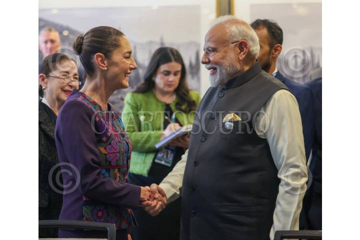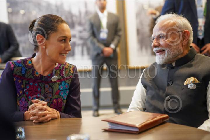 ALBERTA, CANADÁ, 17JUNIO2025.- Claudia Sheinbaum Pardo, Presidenta de México, conversó con Narendra Modi, Primer Ministro de India, entablaron una conversación en el marco de la Cumbre G7, que se celebró en la región de Kananaskis. Ahí la presidenta señaló que se comprometieron a fortalecer la relación entre ambas naciones a partir de inversiones destinadas al desarrollo científico y tecnológico. FOTO: PRESIDENCIA/CUARTOSCURO.COM