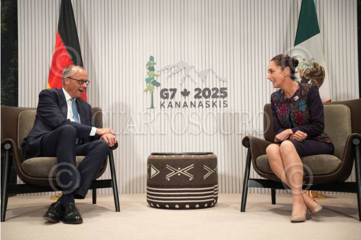 ALBERTA, CANADÁ, 17JUNIO2025.- Claudia Sheinbaum Pardo, Presidenta de México, conversó con Friedrich Merz, canciller federal de Alemania, en la cual conversaron sobre la relación estratégica, valores compartidos y oportunidades de cooperación económica, en el marco de la Cumbre G7, que se celebró en la región de Kananaskis. FOTO: PRESIDENCIA/CUARTOSCURO.COM