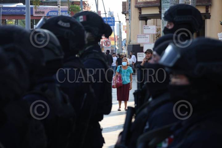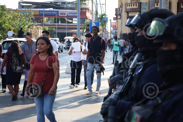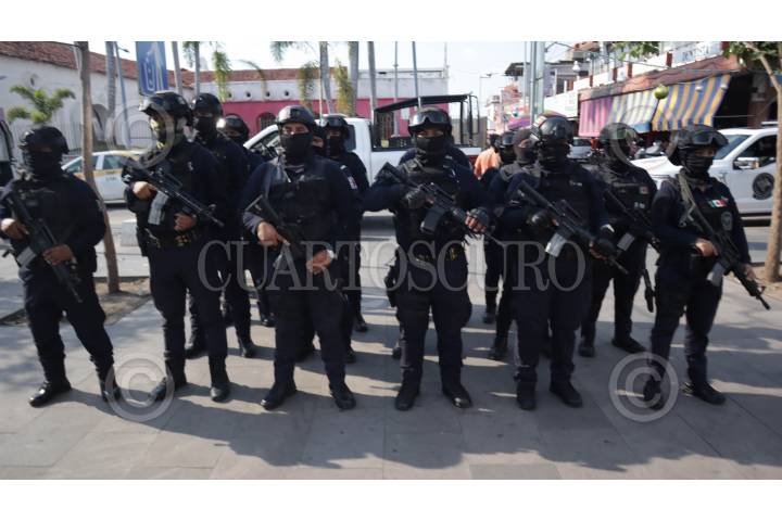 TAPACHULA, CHIAPAS, 07ENERO2025.- El Grupo Especial de Reacción Inmediata (GERI), adscrito a la Policía Municipal, ha puesto en marcha un operativo en las principales calles cercanas a la presidencia municipal. El principal objetivo de esta acción es prevenir los delitos en la zona. FOTO: DAMIÁN SÁNCHEZ/CUARTOSCURO.COM