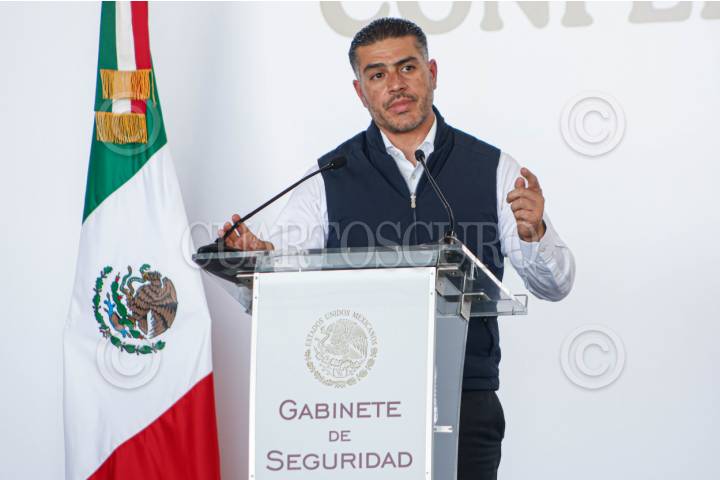 CULIACÁN, SINALOA, 20JULIO2025.– Omar García Harfuch, secretario de Seguridad Ciudadana, participó en una conferencia de prensa en la que subrayó que la prioridad del gobierno federal es devolver la paz a las familias sinaloenses, destacando la detención de 1,487 personas, el desmantelamiento de 91 laboratorios clandestinos y el aseguramiento de más de 53 toneladas de droga en los últimos diez meses. La estrategia se centra en inteligencia operativa, despliegue territorial y coordinación interinstitucional, con énfasis en capturar generadores de violencia y debilitar estructuras criminales como “Los Chapitos” y “La Mayiza”. FOTO: JOSÉ BETANZOS/CUARTOSCURO.COM