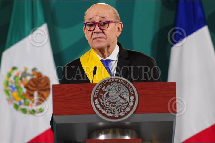 Jean - Yves Le Drian durante la conferencia mañanera.