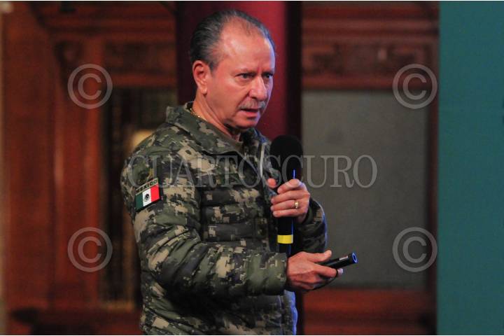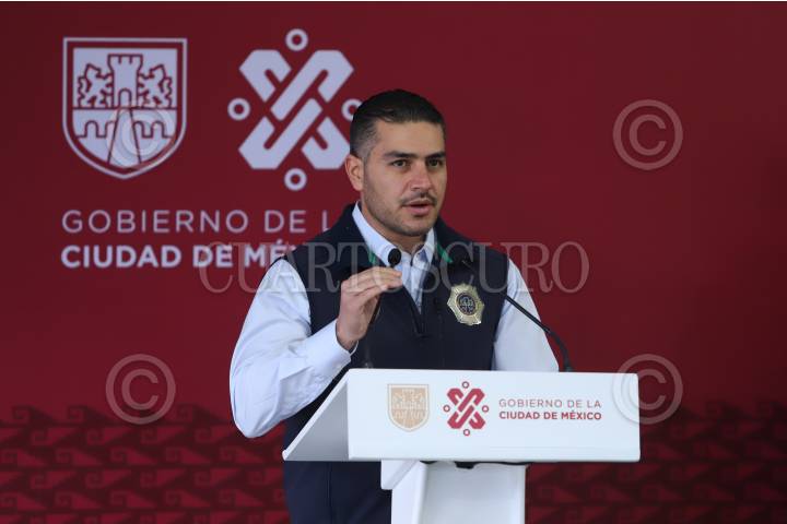 El Secretario de Seguridad Ciudadana Omar García Harfuch durante la Instalación del Gabinete de Seguridad y Mesas de Construcción de Paz en la Alcaldía Iztapalapa.