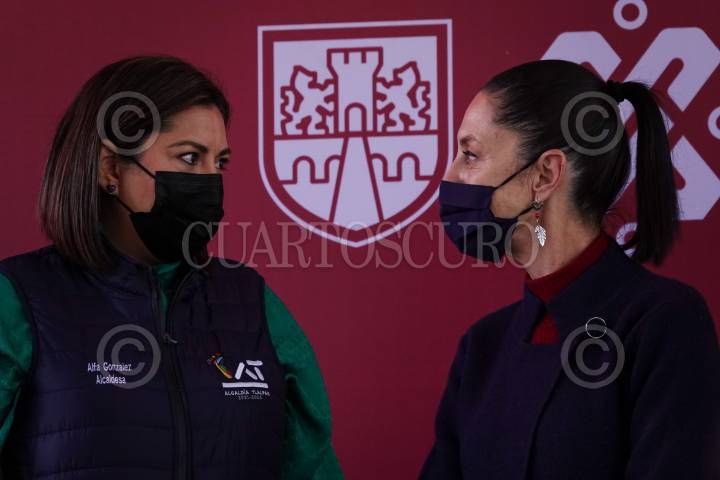 Alfa Eliana González y Claudia Sheinbaum durante la conferencia tras la instalación del gabinete de seguridad en Tlalpan.