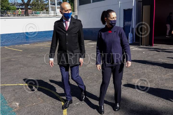 Claudia Sheinbaum Pardo, jefa de Gobierno de la Ciudad y Martí Batres Guadarrama, Secretario de Gobierno, durante la instalación del Gabinete de Seguridad y la Mesa de Construcción de Paz en la Alcaldía Xochimilco.